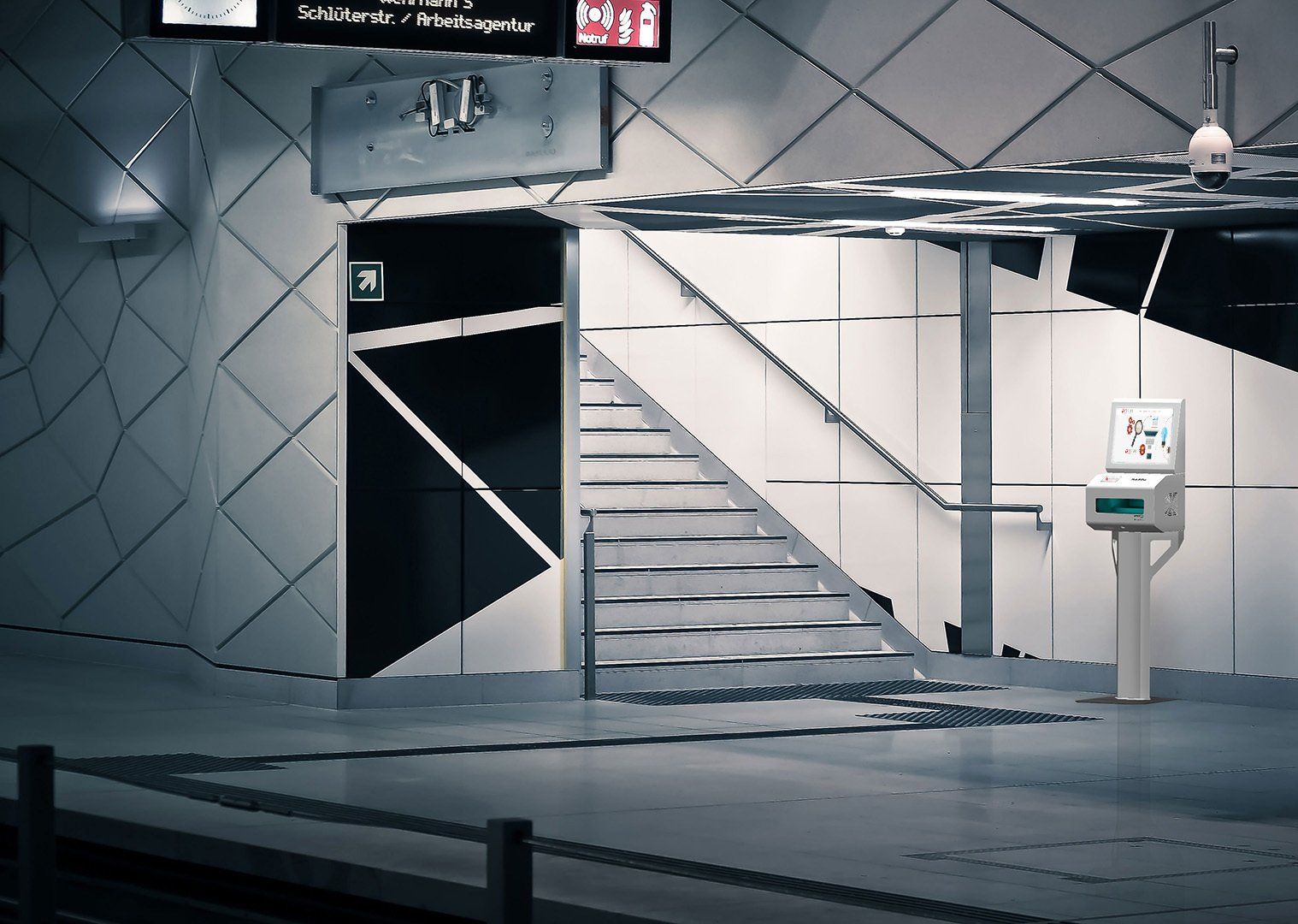 Diffusion d’informations ou de messages publicitaires sur écran lors de la désinfection.